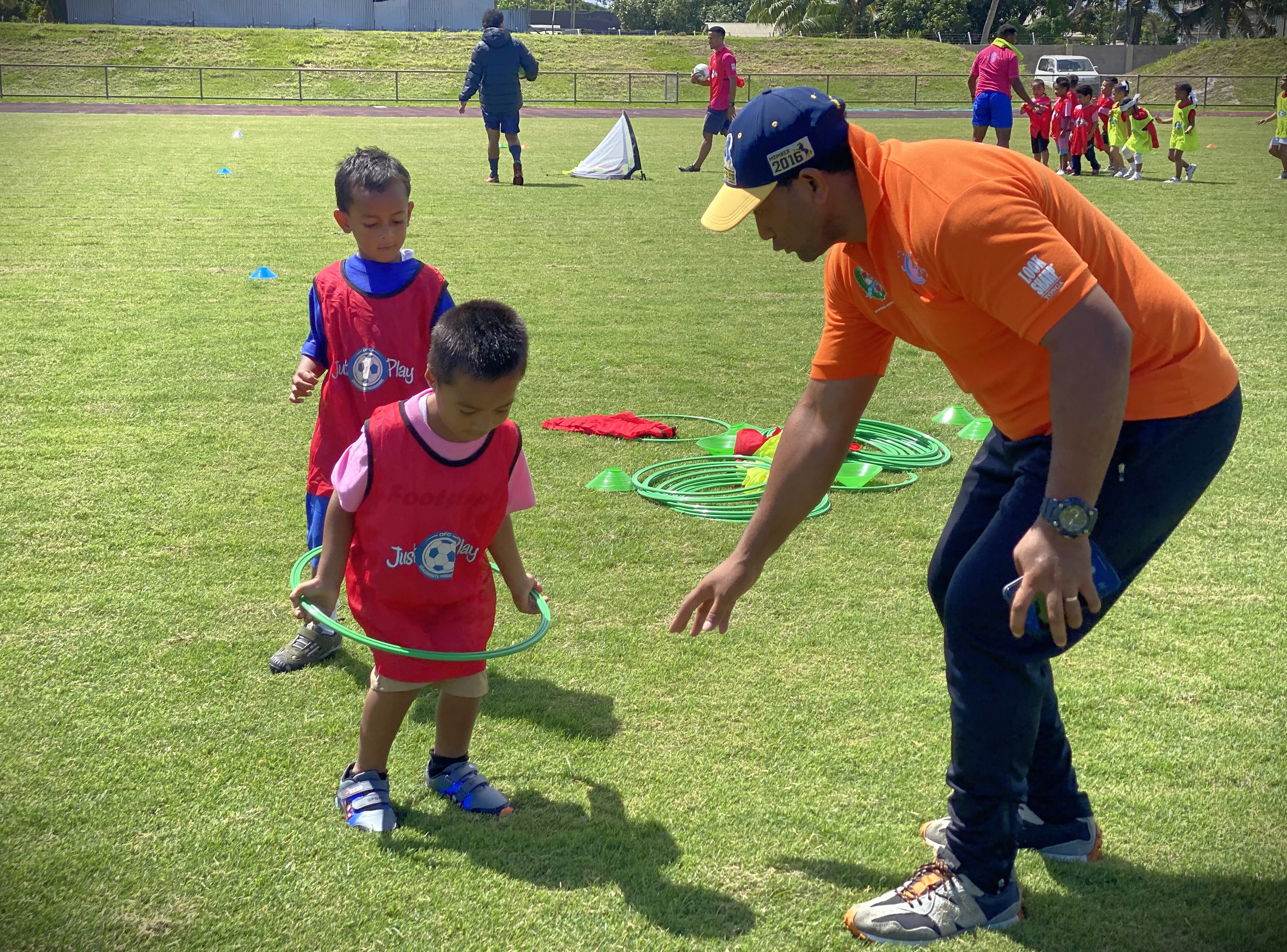 The Just Play team representing Tonga Football Association were invited to set up fun activities and games for children to enjoy and also promote football.