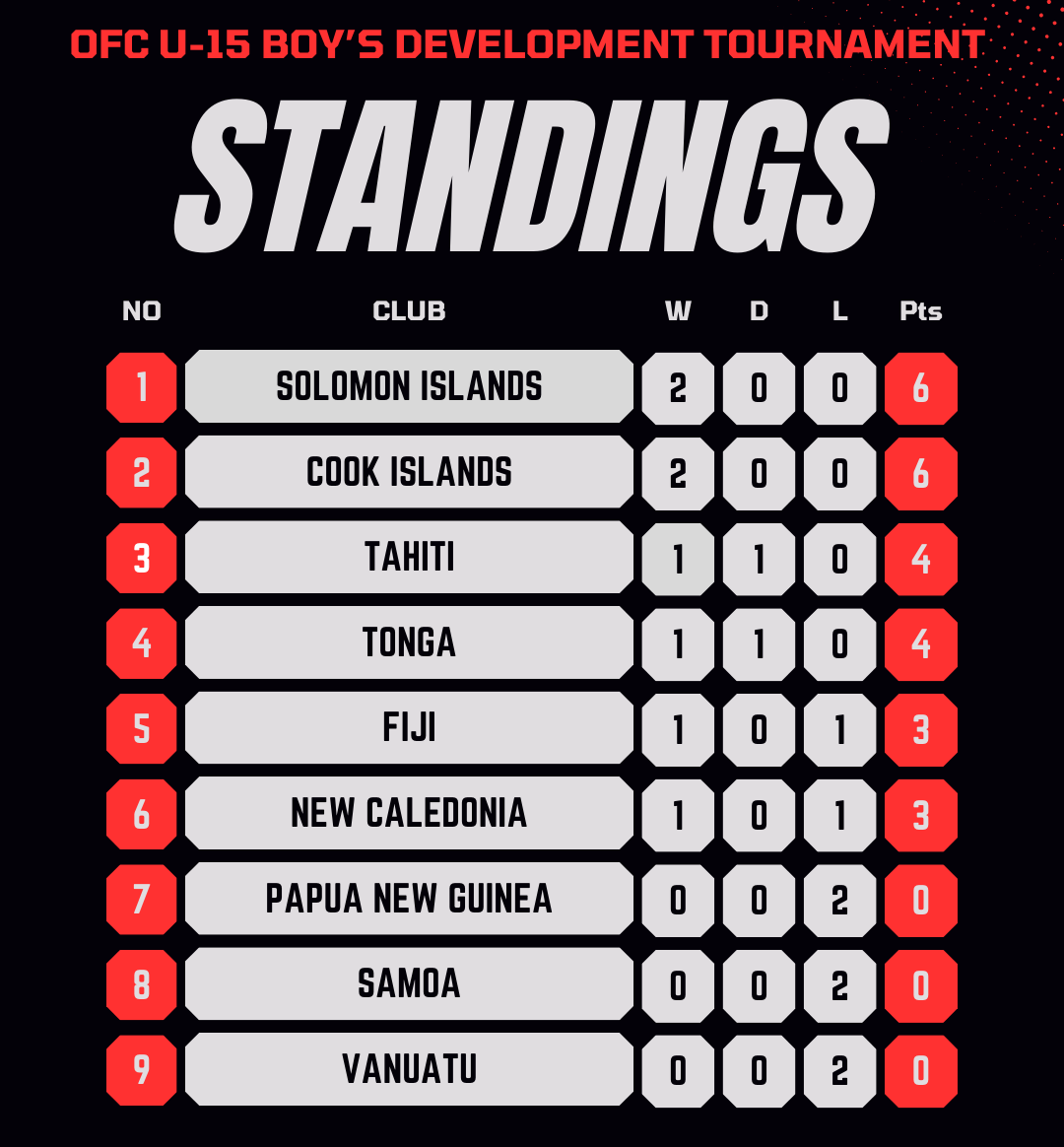 The tournament, aimed at fostering grassroots football development in the Oceania region, featured a round-robin pool format. Tonga was grouped with Samoa and Tahiti in their pool, where they opened with an impressive 2-1 win over Samoa in their first match. In their second group outing, they held a strong Tahiti side to a scoreless 0-0 draw.